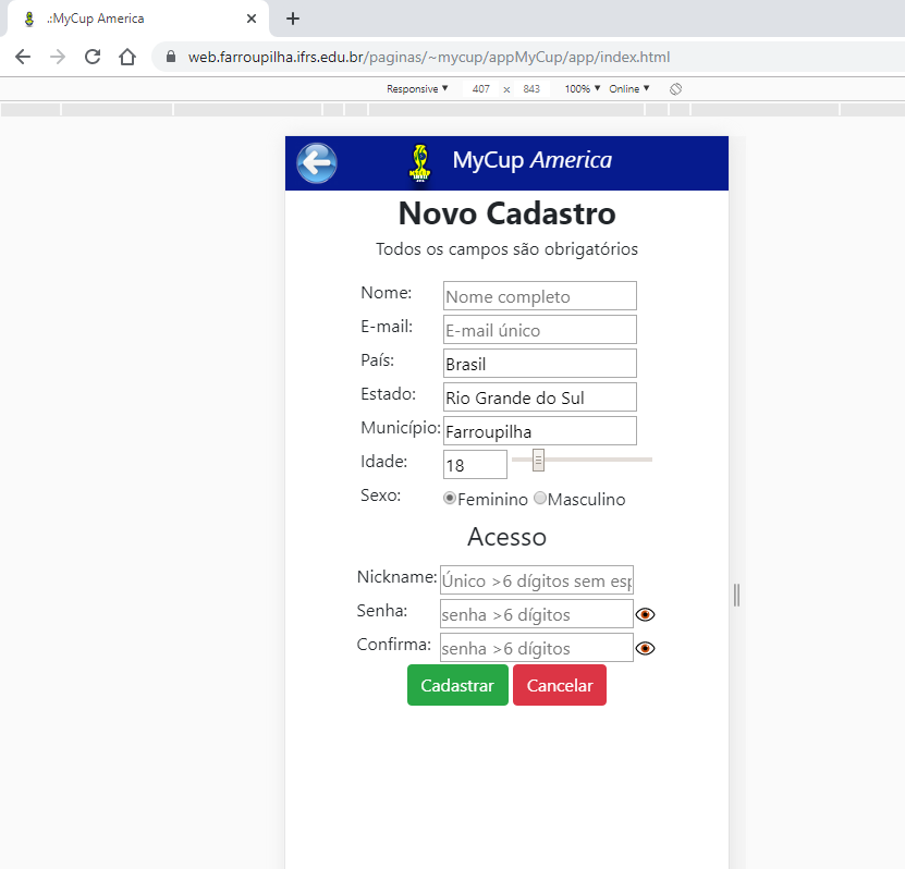 Desenvolvido no 4º Ano letivo do Curso técnico em Informática integrado ao Ensino Médio
